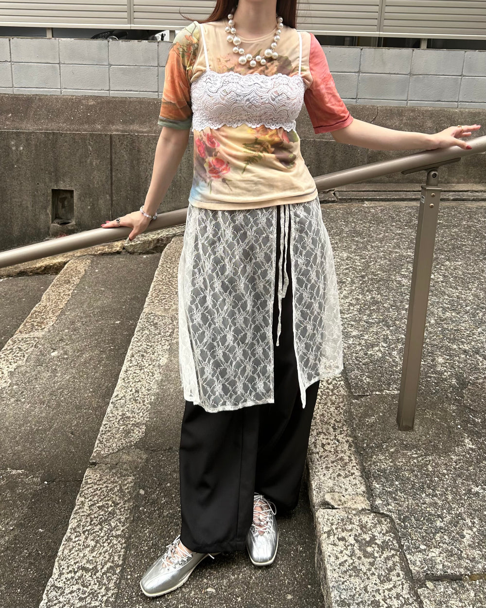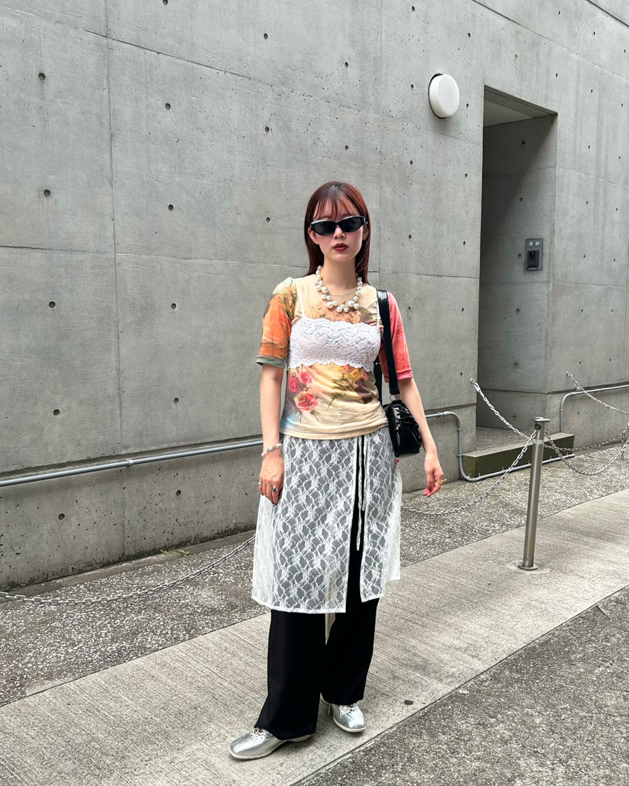 まるでレーススカートをレイヤードしているような、スカートとパンツをドッキングさせたアイテム。