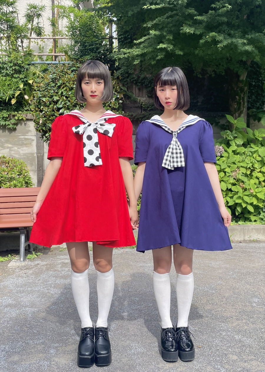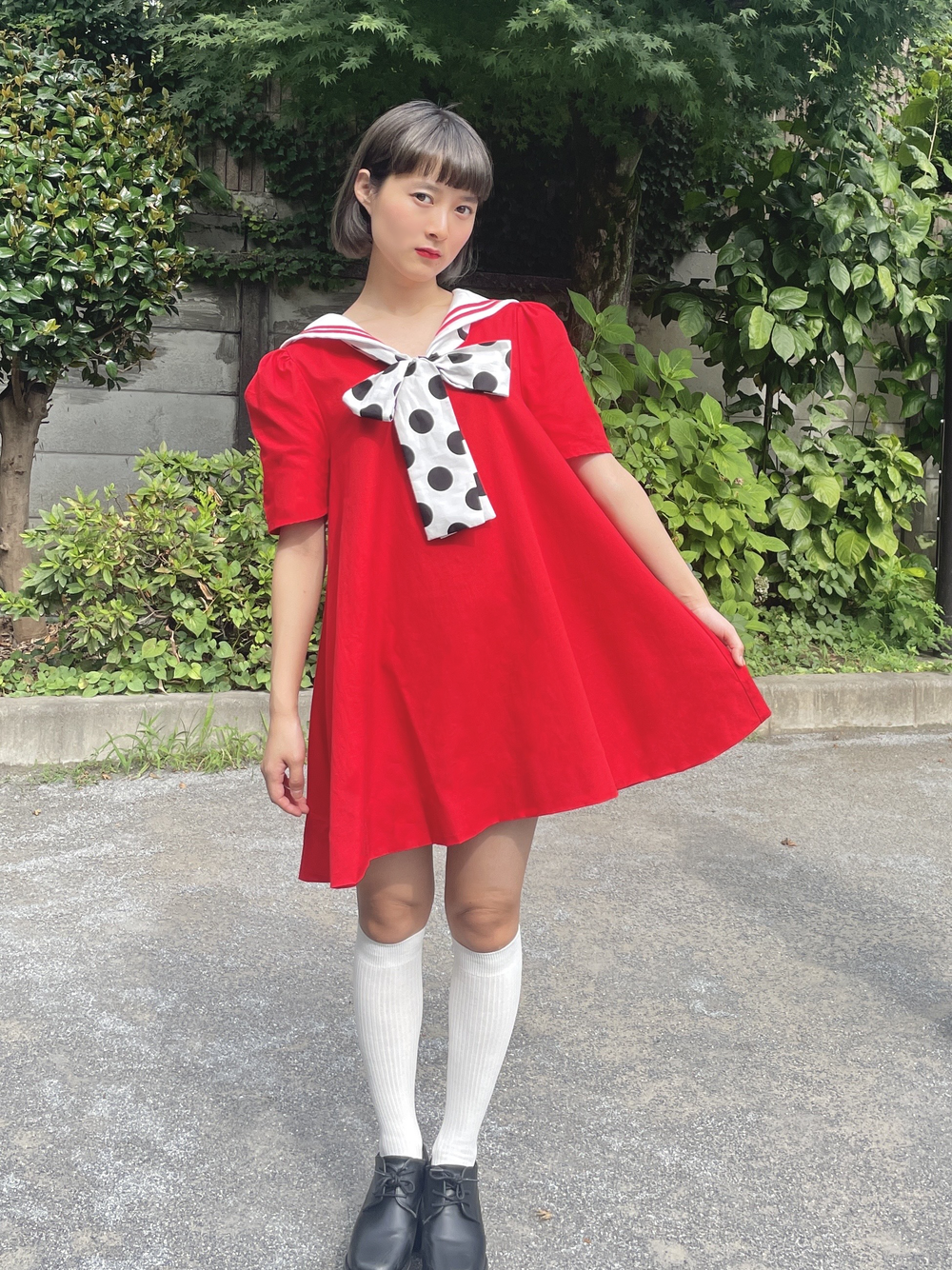 70年代のマリンルックをオマージュしたAラインワンピ。ドットorチェック、リボンorネクタイはお好みで自由に選べます◎もちろんリボンやネクタイを外しても存在感抜群!自分次第でカジュアルにも上品にも着回し出来る優れもの♡さらに、ミニだけではなく、ロング丈もご用意しました!