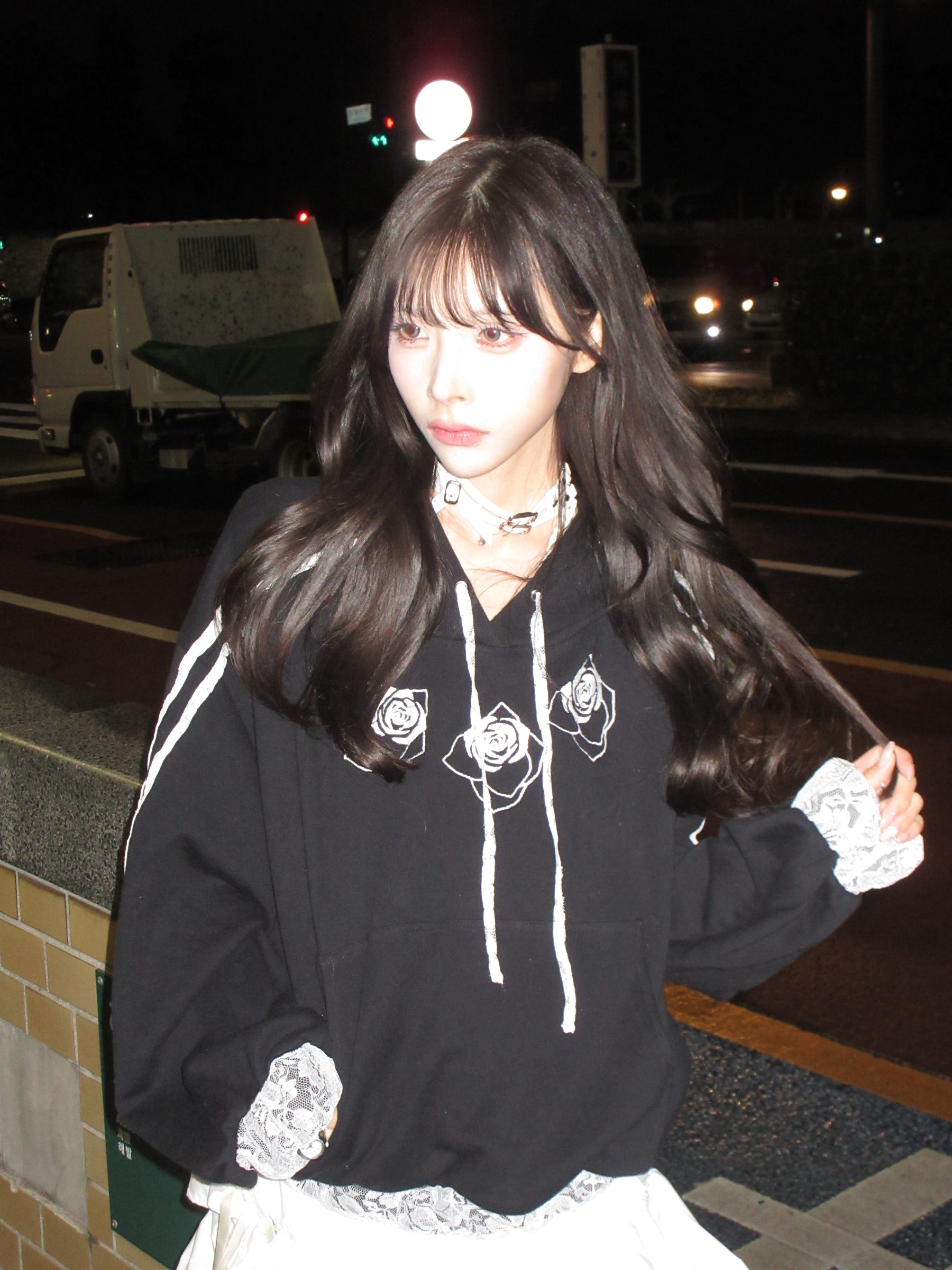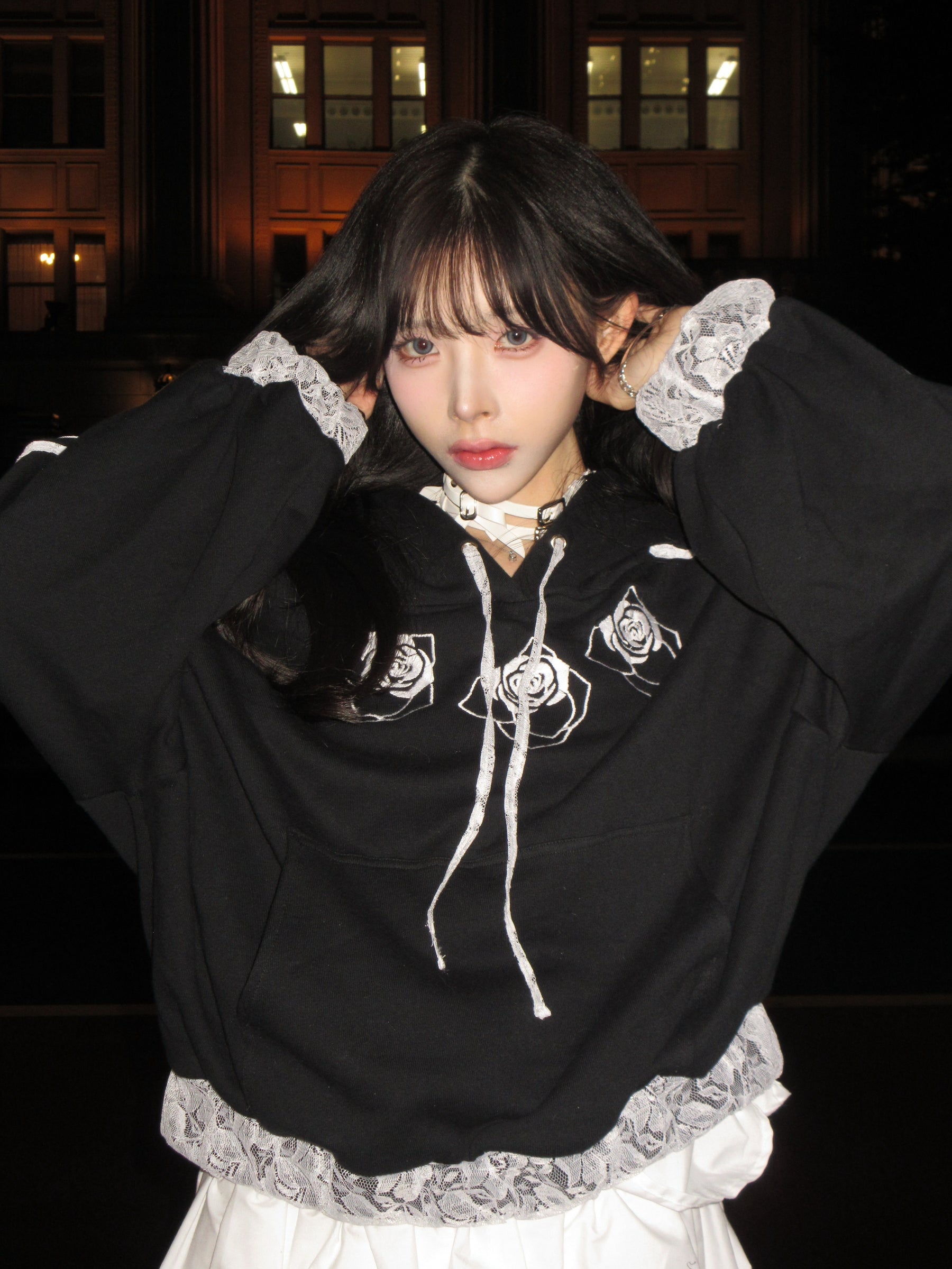 ■Rose Embroidered Cropped Hoodie(クロップド丈)