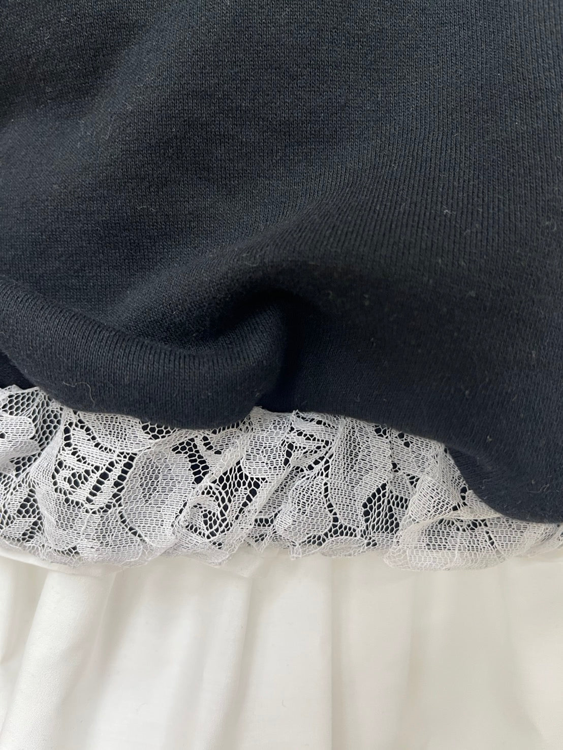 サイドのラインやフードの紐はレース仕様で、細部までかわいさにこだわった一枚です。