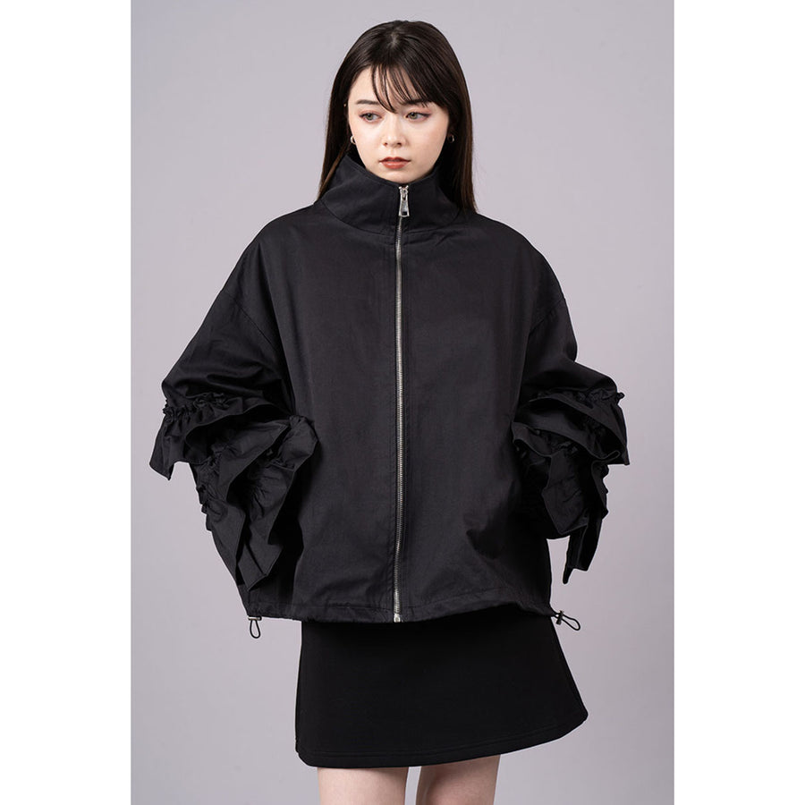 ボリュームのあるお袖のフリルがインパクト大のジャケット。