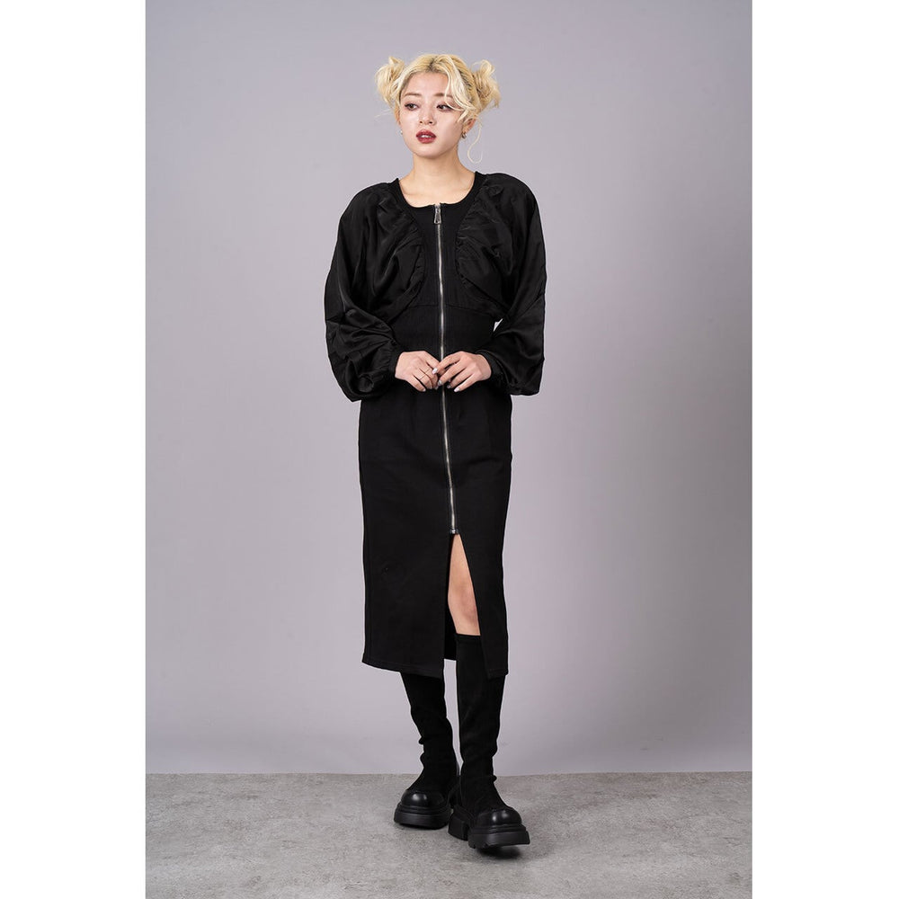 メリハリのある切り替えとタイトシルエットで大人モードな雰囲気のワンピース。