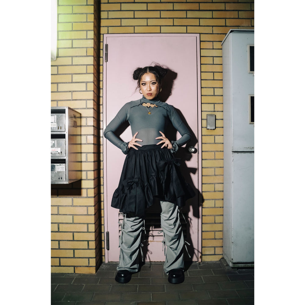 The open chest design lets you show off the skin, which is the latest trend! The long sleeves are designed with frills that look like flowers blooming. It's a cute item that can be worn alone or layered with a dress! This is an original HEENIE HEENIE item.