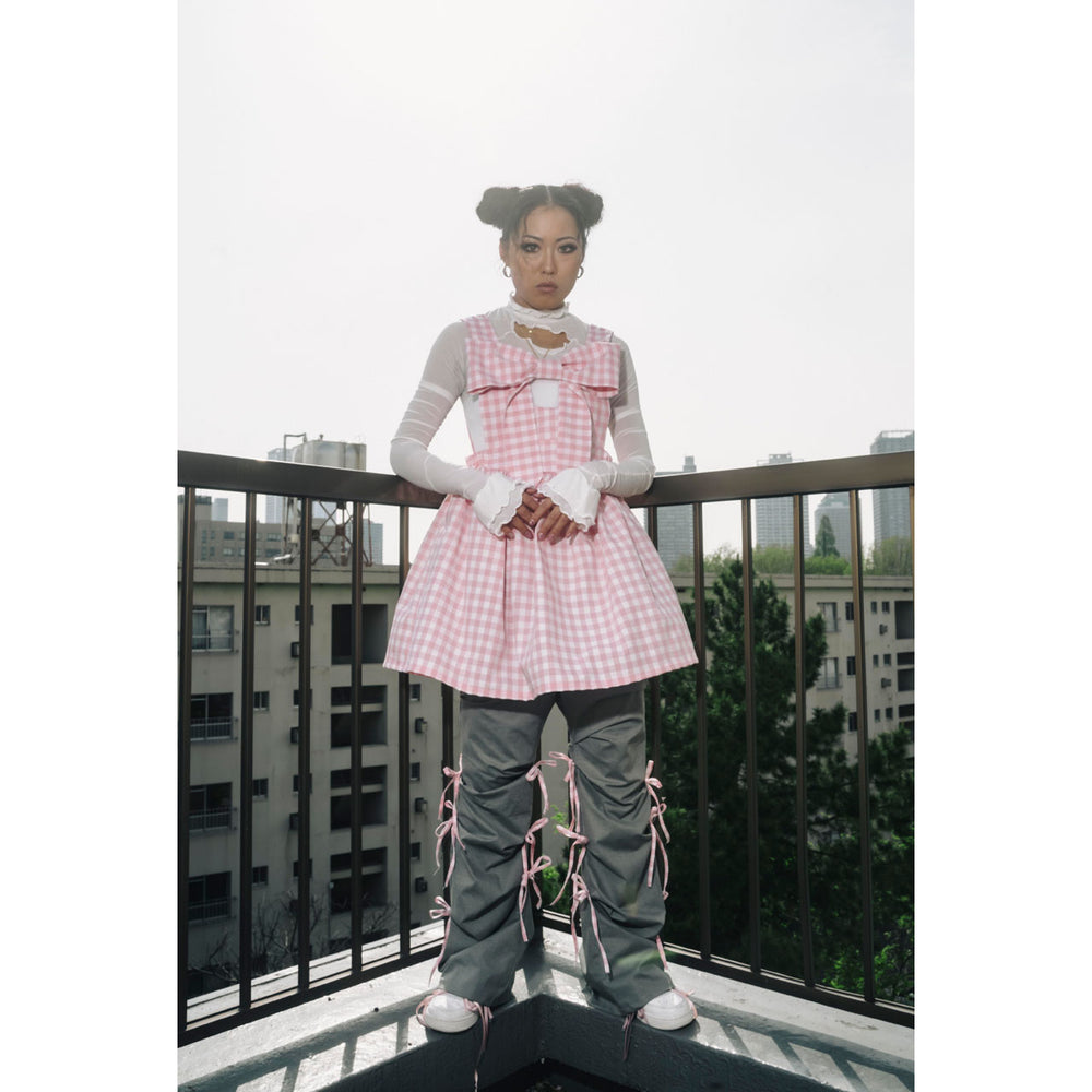 The popular front ribbon dress now comes in a new check pattern color!!!
